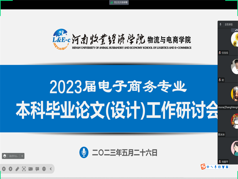 为了进一步推进本科毕业论文(设计)相关工作,williamhill英国电子商务专业全体指导教师于2023年5月26日19:00-21:00在腾讯会议进行了2023届电子商务专业本科毕业论文(设计)线上工作研讨会,会议由李娜老师主持,williamhill英国曹献存院长、李艳菊副院长、任佳佳副院长出席会议。