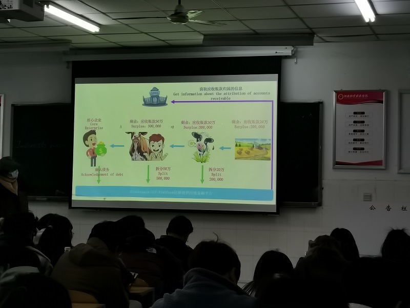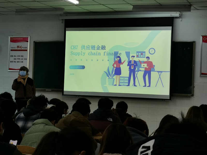 苗洁莹老师本次观摩课的授课主体为21 国教物流(专) 01、02、03班,基于“5E”教学方式的应用,通过资料收集、案例分析、问答互动等多种教学方法,以学生自学、批判性思考、自主探究、实践练习、实时反馈为主,以教师引导性讲授和评价为辅,让学生站在整体的角度上把握现代供应链金融的基础原理和理论,在此基础上熟练掌握供应链金融模式实战的技术技巧。苗洁莹老师的课堂内容丰富,思路清晰,先用模拟融资场景帮助大家理解融资/金融的含义,之后利用买卖牛的故事生动诠释了区块链技术与供应链金融的融合,将晦涩难懂的理论通过故事浅显易懂地展示出来。同时,课堂通过引导式问答互动,充分调动学生的学习积极性,能够启发和鼓励学生思考,培养学生分析问题、解决问题能力。授课过程,通过中央金融工作会议的重点圈讲,将课程思政自然充分地融入课堂,充分展示了我院优秀青年教师的教学风采。