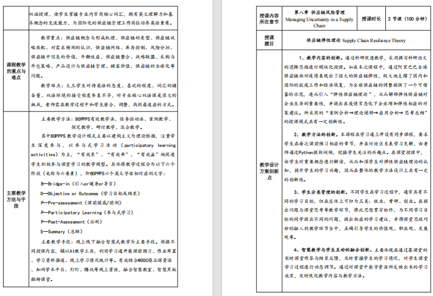 图4 孙红霞老师“供应链弹性理论”教学设计方案