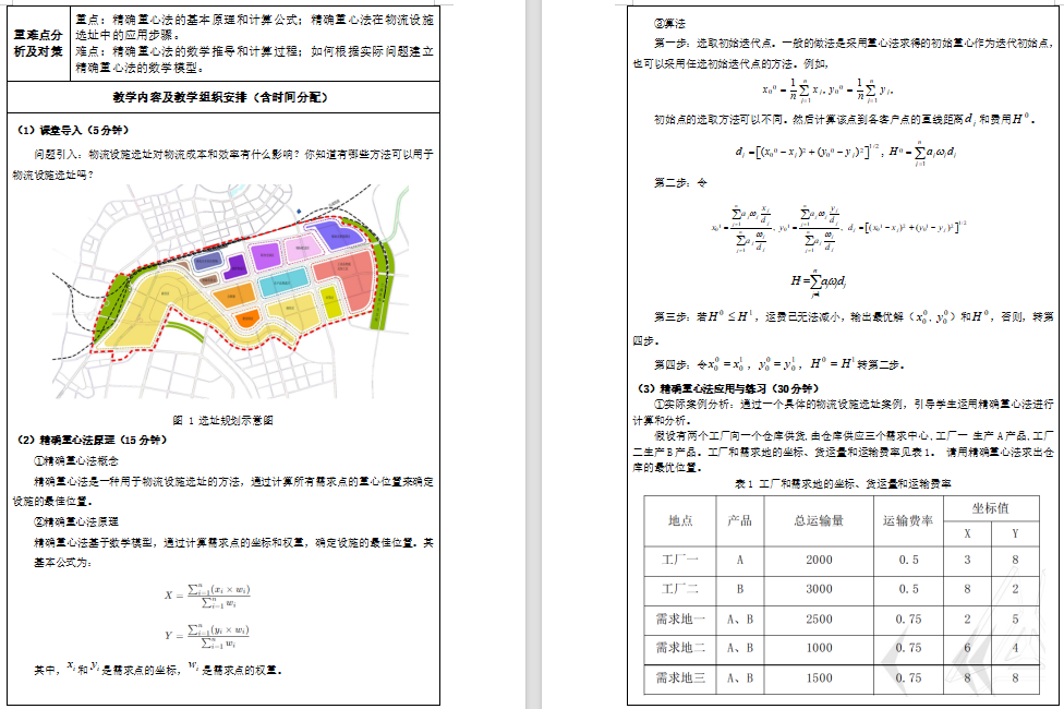 图5 王俊涛老师“物流中心选址——精确重心法”教学设计方案