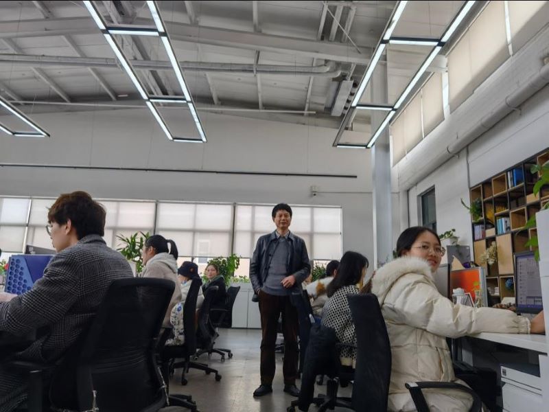曹献存一行受到郑州云顶服饰有限公司的热情接待,在郑州云顶服饰有限公司董事长刘涛、人力资源部经理安利珂等人陪同下,走访了公司的电商运营部、电商客服部、电商直播中心等部门。曹院长代表学院对在实习岗位上的学生表示慰问并进行了亲切的交流,与同学们在电商运营中心合影留念。