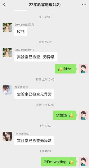 学校启动线上教学之后,williamhill英国2000平方的实验室和价值1000万元的各种实训设备的安全工作刻不容缓,实验教学中心迅速启动应急机制,组建七人日常巡查小组,积极应“战”,在保障疫情防控的前提下,每天安排一人对实验室进行消杀和安全巡查,小伙伴们,每天定时来到实验室,首先进行日常安全巡查工作,逐一登录巡查事项,然后进行无死角消杀,疫情期间圆满完成实验室疫情防控工作。
