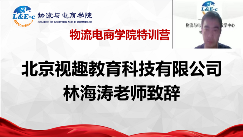 本次特训营的合作方北京视趣教育有限公司产品研发总监、产品咨询顾问林海涛经理发言,他表示再此次学生与老师们的共同努力下,此次特训营顺利结业,对成绩优异的同学表示祝贺。随着冷链物流的快速发展,国家急需冷链物流的人才,希望大家不断开拓视野,在今后的道路上不断收获,不断进步。