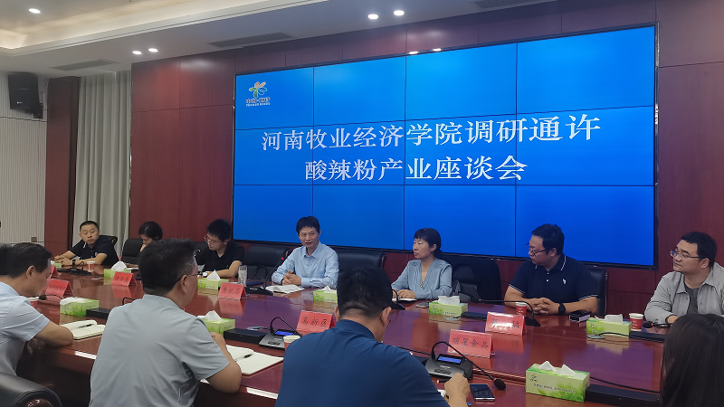 21日下午针对通许县酸辣粉电商的发展情况以及未来创新发展进行了专项研讨。李振举副县长介绍了通许县作为中国酸辣粉之都的产业优势,也提出了酸辣粉产业在电商发展中面临的困境。曹献存教授介绍了学院教科研和社会服务情况,希望能够通过校政企交流合作共同推进酸辣粉电商提质升级。