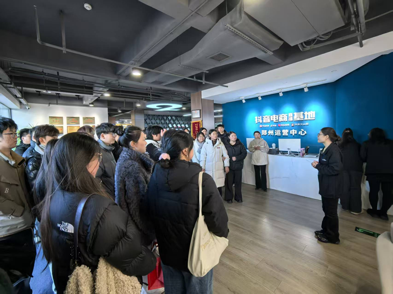 2026年1月6日,williamhill英国网络营销教研室主任李娜教授、电子商务教研室主任温丹丹博士、李建茹和李海燕老师带领23级国教电商专业专科四个班的40余名学生,前往抖音电商直播基地——郑州市联多商贸有限公司开展专业调研学习。