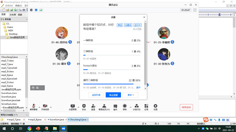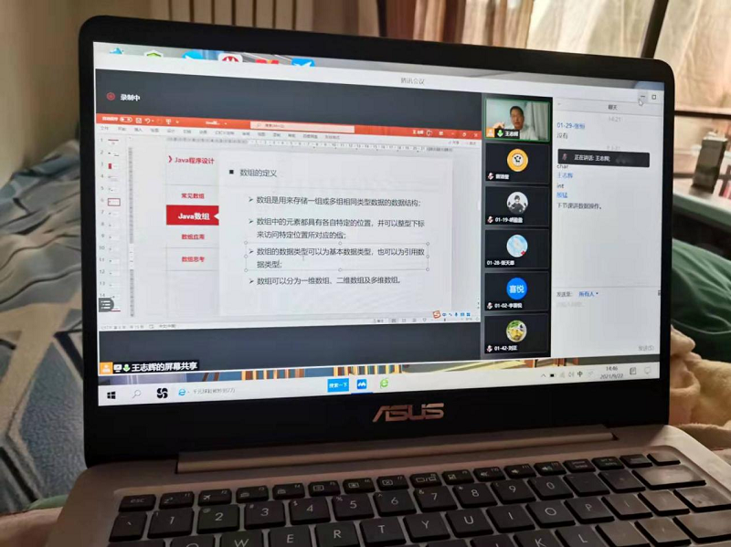 9月22日下午,电子商务教研室的王志辉老师利用腾讯会议为同学们讲授了一节生动活泼、引人入胜的《Java程序设计》网课,学院领导、督导和学院全体教师参与了听课和评课。