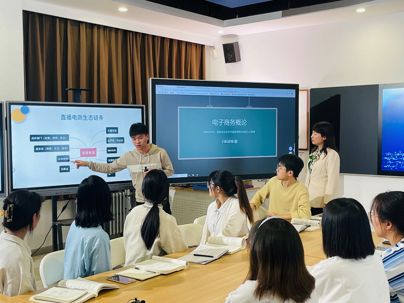 2021年12月1日下午,电子商务教研室在学科创新实验室开展智慧化教学观摩活动,李艳菊教授首先做了本节课教学阐述,分析了所带班级的学习痛点以及所采用的具有针对性的教学设计、教学过程和教学评价;然后利用智慧教室、超星学习通、慕课堂以及现场演示、线下沉浸式研讨、量化分析与评价等混合式创新方式围绕直播电商的内涵及价值链路等重难点进行了现场教学;最后李艳菊教授分享了自己智慧化教学的感悟,提出这是自我教学认识的突破与提升,务必要将“以学为主 产出导向 持续改进”理念内化于心,才能够在不懈的钻研中创新和应用。电子商务教研室部分教师参与了此次智慧化教学观摩活动,并对比和思考自己所上课程是否能进行智慧化创新、如何进行智慧化创新以及怎么智慧化教学等。