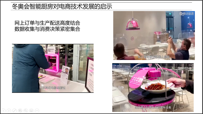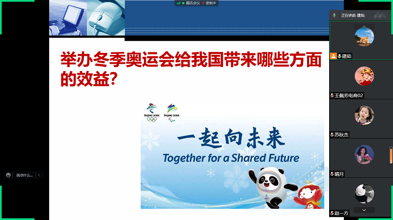 梁金萍教授和王志辉老师在《物流学》、《电子商务概论》的绪论课中以冬奥会服务机器人和全自动的智慧餐厅为例,展示了京东物流机器人独家“包揽”物资配送的出彩和智能厨房中的数据收集同消费决策的紧密结合,让同学们感受了我国物流与电商领域的技术硬实力。时炳艳老师、刘静老师和张朦朦老师分别在《商务网站和网页设计》、《电子商务前端设计》课程中以冬奥会官方网站、冬奥会吉祥物“冰墩墩”和“雪容融”的设计案例引导学生感受设计的魅力、分析设计的主要元素并思考如何成为一名优秀的电子商务前端设计师。黄骞老师在《网络技术与应用》课程的绪论课里为同学们详细介绍了采用“叶脊网络架构”的北京冬奥会数据网,该网络仅用了一张网络,就实现了对媒体转播、赛事报道、工作人员通信保障等多项业务的统一承载,同学们由此对我国在网络科技领域的尖端技术骄傲自豪。殷猛老师在《电子商务数据库技术》和《PHP程序设计》课程的绪论课中讲解了冬奥会中数据的采集、传输、保存与使用,同时鼓励同学们能够努力学习,参与到奥运会等相关赛事程序设计和数据库管理的工作,为国家和社会贡献自己所学知识。李娜老师和肖丽平老师在《网络营销》绪论课中深入解读了新晋流量“IP”冰墩墩背后的网络营销策略,激发了学生对网络营销运营工具、策略的学习热情。