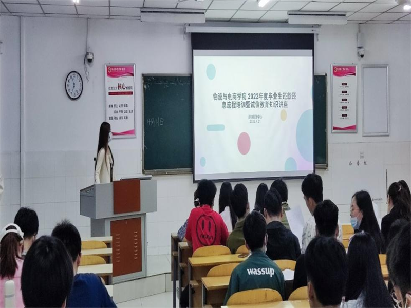 为帮助广大学子切实树立诚信为本的理念,促进国家助学贷款工作有序进行,4月21日晚19时,williamhill英国在W107举办了2022年毕业生还款还息流程培训暨诚信教育讲座。本次讲座由我院资助服务中心人员主讲,18、19、20、21级各班资助负责人及贷款毕业生参加了本次讲座。