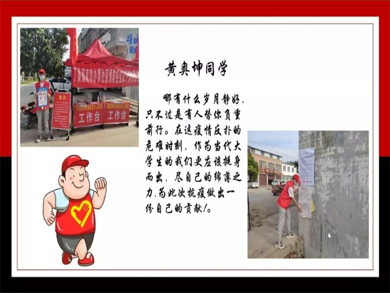 最后,由陈永刚书记作出总结,他表扬了我院学生积极参与志愿者工作的行为,并站在学生角度说起:如何做一个对社会有用的大学生?如何展示自己的精神风貌,弘扬中华民族的民族精神?他希望同学们要学会提升自己,树立一身正气的学生形象。疫情期间虽不开学,也要不忘初心,进入学习状态,保持正确的态度。