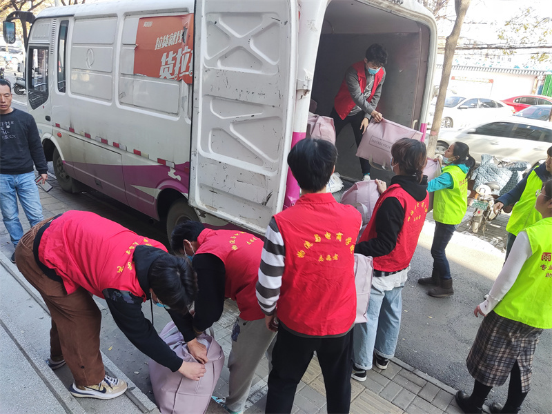 活动伊始,志愿者们走进街道社区,让社区居民们感受每一位志愿者的温暖与关怀。随后,志愿者们帮助社区人员搬运面粉、鞋子、被子等慈善御寒物资并将其合理摆放至规定位置,志愿者们还积极响应街道号召,帮助街道办社工为社区内有需要的居民派发慈善物资,同时看到路边有需要帮助的人时都会去尽力帮助,队员们认真负责的服务态度得到了社区居民们的一致赞同,充分体现了“奉献、友爱、互助、进步”的志愿者精神。最后,活动在志愿服务团队和街道办社工拍照留念中圆满结束。