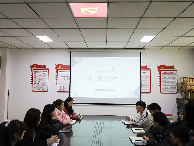 会议伊始,主持人从现阶段大学生之间的“躺平”现状入手,依次引出了“什么是躺平”、“‘躺平’行为出现的原因”、“如何看待大学生的‘躺平’行为”三个问题,同学们均踊跃举手发言,结合自身实际阐述对这三个问题的理解与看法。
