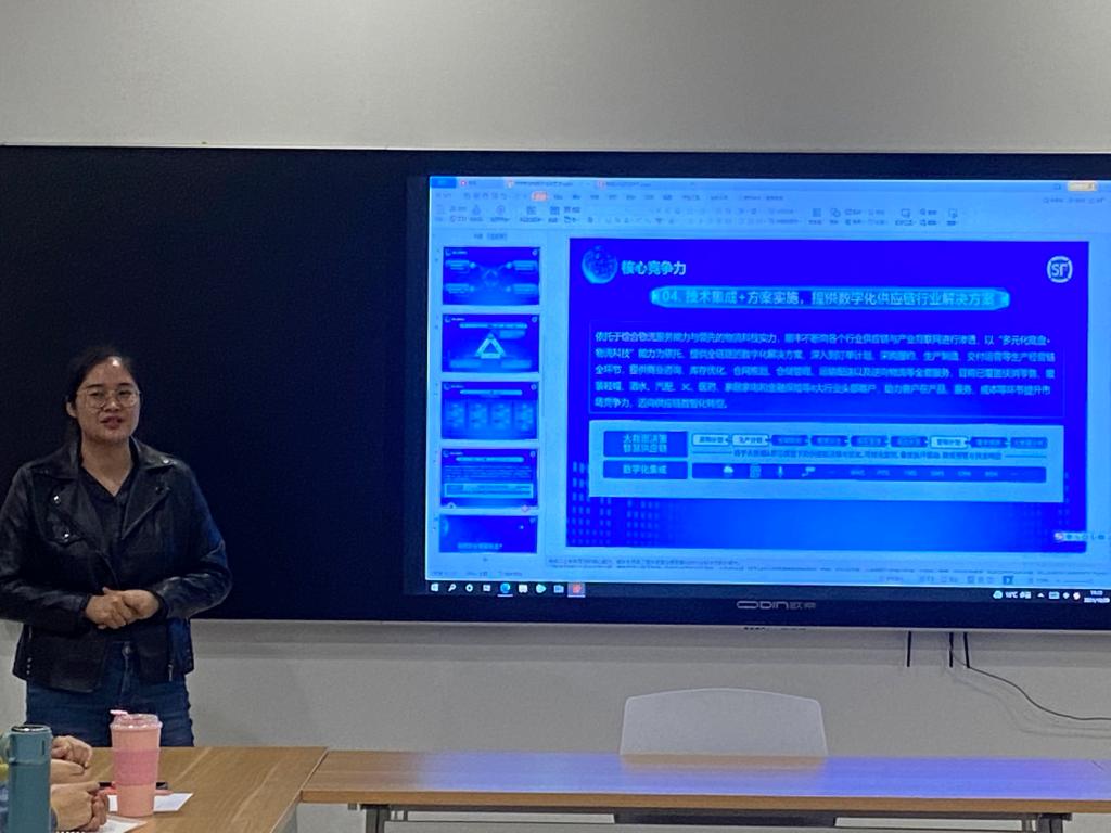 会议开始主持人窦琳向大家介绍了嘉宾于艳学姐,学姐和同学们简单寒暄后便开始带来她的分享。首先学姐从目前顺丰速运有限公司的特色和内部结构出发,向我们展示了顺丰速运的先进性。随后学姐与同学们进行互动,同学们根据自己的疑点对学姐进行发问,学姐非常耐心地解答,为我们带来了许多不一样的见解。学姐也为我们提出了很多建议,并告诫同学们,目前物流行业对人才的需求量较大,不管是选择就业还是考研,同学们一定要根据自身的优劣势,选择适合自己的岗位,并在其位置上发光发热。