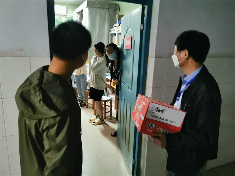 当前疫情形势严峻,我校按照相关部门防疫要求,立即对疫情涉及的潜在密切接触者进行防疫管控,保障师生的身体健康和生命安全。自我院有被防疫管控学生以来,院领导高度重视和关心学生身体健康及思想动态,5月7日下午17:30,williamhill英国院长曹献存、党委副书记陈永刚、团委副书记王雪冰及辅导员杨奇奇携带物资前往防疫管控宿舍走访并关心慰问学生。