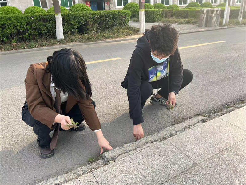 清扫前,学生们在领取各自劳动工具后,迅速到达指定劳动区域进行明确分工而后开始清扫活动。虽已至三月,但冬日的寒气并未散去,但这丝毫不影响学生们积极清扫的热情。学生们在打扫卫生的时候注意到路沿处的野草不利于道路美观,秉持着“致广大而尽精微”的成事之道,主动将野草进行处理清扫,虽没有除草工具,但同学们或拔或割,终将野草处理地干干净净。彰显了物电学子一丝不苟的劳动态度与奋勇当先的青春担当。在清扫的过程中,陈永刚书记和夏静老师来到劳动区域与学生们进行交流讨论,学生们表示从劳动中收获了快乐,更加明白了劳动的意义。偶尔经过的教职工也对学生们认真清扫的态度连连称赞,更增加了学生们劳动的成就感。