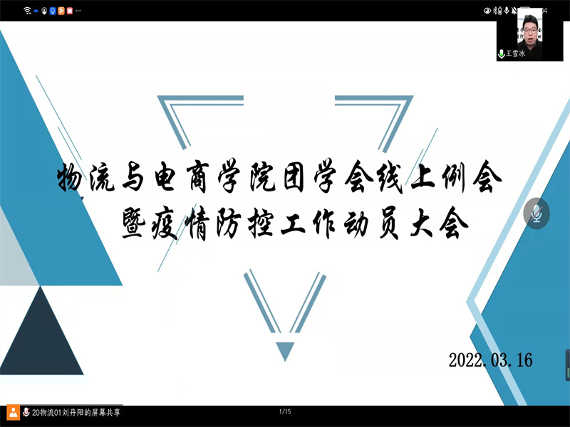 近日来受国内疫情影响,我校(英才校区)出现新冠密接者,为深入贯彻落实我校疫情防控最新工作部署,发挥团学会干部带头作用,williamhill英国于3月16日晚8时在腾讯会议开展了团学会线上例会暨疫情防控工作动员大会,本次会议由我院团委副书记王雪冰老师主持召开,团学会全体成员参与进行。