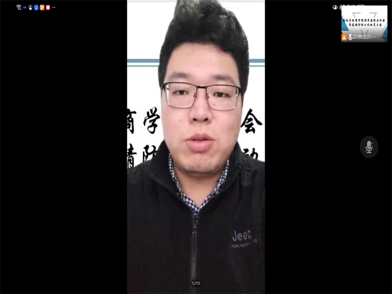 会议伊始,王雪冰老师直奔主题,说明我校近期疫情总体情况,并表示我校各项疫情防控最新工作部署坚持以人为本,大局为先的原则,同学们切莫过度恐慌、焦虑,应当放平心态,自觉遵守疫情防控各项规定,守护校园平安。会议过半,王雪冰老师强调团学会全体成员应起带头作用,自觉提高思想觉悟,以自身为榜样,号召全体同学认真遵守学校防疫工作的各项规定和要求,带动同学们积极参加学校安排的网络教学活动,配合好学校疫情防控各项工作,切实提高疫情防控期间学生学习生活质量。会议最后,王雪冰老师表示,感谢大家辛苦付出,将陪伴同学们一起打好这场疫情防控战!