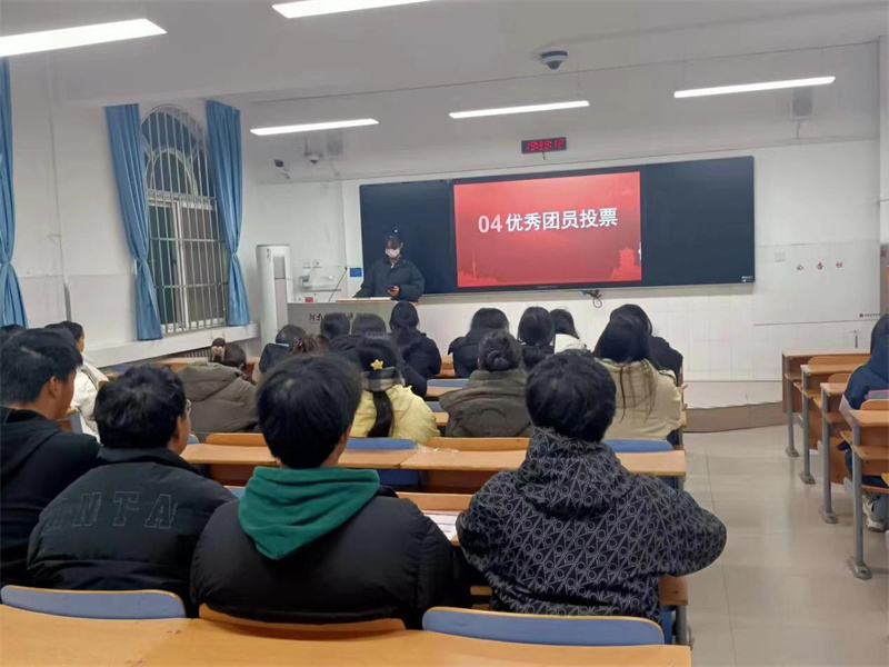 会议伊始,各团支部全体团员起立奏唱团歌,接着,各团支部书记汇报本支部开展团员和青年主题教育情况,以及团支部学习习近平新时代中国特色社会主义思想和组织生活会准备情况,并结合本团支部工作和个人实际情况交流了自己的认识和体会。紧接着进行团员教育评议,团员进行自我评价,其他团员对其进行评议,交流心得体会,开展团员先进性评价民主测评,投票选出各团支部的优秀团员。随后申书记、尚老师、马老师、杨老师分别在各团支部对本次会议进行了点评讲话,表达了对团员的要求和期望,期望团员积极参加各种活动提高自身能力,积极向党组织靠拢,担负起自己的责任,履行相应的义务。最后大家全体起立,共同温习了入团誓词。