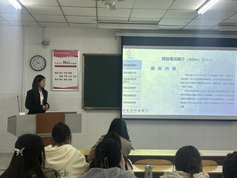 老师听完每个队伍的讲解后,从项目的可行性、PPT的制作、汇报人的状态和仪容仪表等方面提出了针对性的建议。此外,尚津老师还着重强调了参赛的注意事项,提醒参赛队伍从成功者身上汲取经验,并与同学们进行了交流互动。