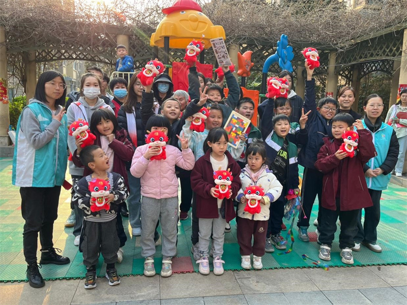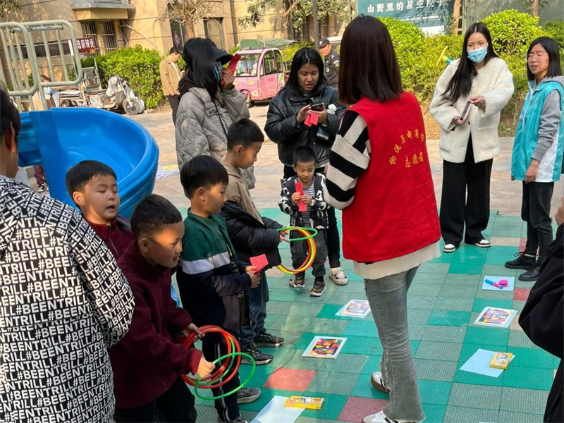 活动当天,志愿者们早早地来到社区,与孩子们亲切交流,了解他们的兴趣爱好和学习情况。随后,志愿者们根据孩子们的年龄和兴趣特点,精心设计了丰富多彩的活动内容。在手工制作环节,志愿者们引导孩子们和家长动手制作剪纸,剪出各种各样的图形,让孩子们在动手实践中感受到乐趣和成就感;在游戏互动环节,志愿者们与孩子们一起玩了套圈、投壶、三子棋等游戏,让孩子们在游戏中锻炼身体,增进友谊。活动现场,孩子们的笑声、欢呼声此起彼伏,志愿者们的耐心、细心和爱心也赢得了孩子们和家长的认可和赞赏。家长们纷纷表示,这次活动不仅让孩子们度过了一个愉快的下午,也让他们感受到了社会的关爱和温暖。