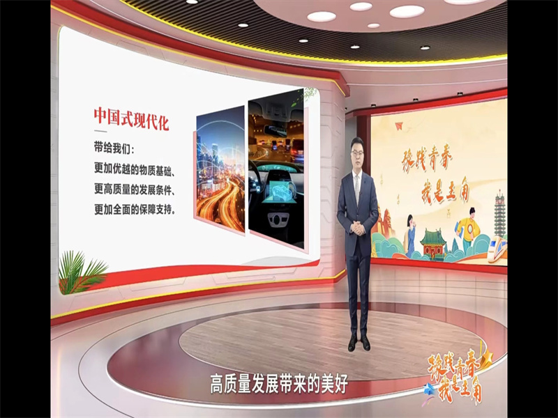 第一讲主题是《思政教育:向新出发》,直播开始,同学们首先跟着老师畅游中华大地,感受了淄博、深圳、安阳的精彩,接着跟随老师进入教育中国之行,去到了“城下有泉”,“其水若酒”的酒泉,在无锡再次感受了电子科技大学夺冠的热情,去魔幻之都上海看到了C919大飞机。然后同学们进入了活力中国之行,以运动之城为主线,感受了中国人的运动热情。最后同学们跟随老师进入文化之行,在三星堆遗址中寻找文化根脉,在西安感受文化之魂等。
