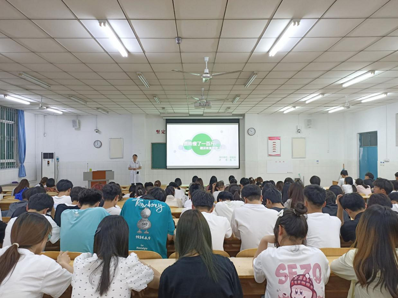 讲座伊始,主讲嘉宾易华医生以幽默风趣的方式引入主题,迅速吸引了在场学生的注意力。她首先介绍了我国成人超重/肥胖的严峻形势,强调了肥胖对个人健康和国家医疗系统带来的沉重负担。随后,易华医生围绕贾玲的减重历程、我国肥胖现状、合理减重速度、纯饥饿法减肥的潜在危害、脂肪的作用以及减肥餐的正确选择等六个主题进行了详细阐述。
