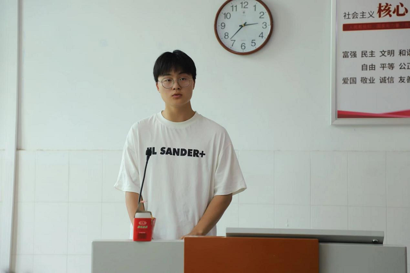 学生干部代表22级电商02班马子硕发言,他代表全体学员表达了要珍惜集中培训的学习机会,认真学习本次培训课程,在日常学习工作中,作为学生干部,应时时处处以身作则,树立正确世界观、人生观、价值观,提高政治觉悟,时刻牢记自己的职责,服务师生,积极工作。