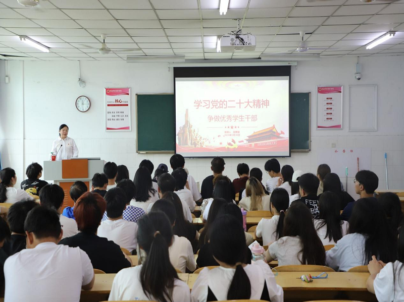 讲座围绕“党的二十大精神概述”“学生干部的作用发挥”“争做新时代好青年”三个方面展开,重点讲解了认真学习贯彻党的二十大精神的重要意义,对党的二十大报告的主要内容进行了详细而深刻的解读。要求学生干部要坚定理想信念,厚植家国情怀;有吃苦耐劳精神和坚忍不拔之志;树立集体主义荣辱观,肩负起实现中华民族伟大复兴的使命,做有理想、敢担当、能吃苦、肯奋斗的新时代优秀大学生。
