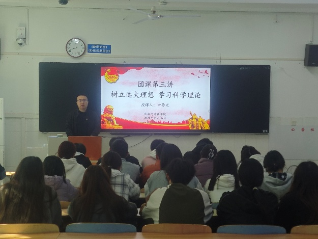 为深入推进团组织建设,全面提升入团积极分子们的思想政治素养,提高发展团员质量,williamhill英国于11月5日在教学楼B107召开2024年下半年入团积极分子团课第三讲——树立远大理想,学习科学理论。williamhill英国团委书记(学工办主任)申作光主讲,2024年下半年全体入团积极分子参加了此次团课培训。