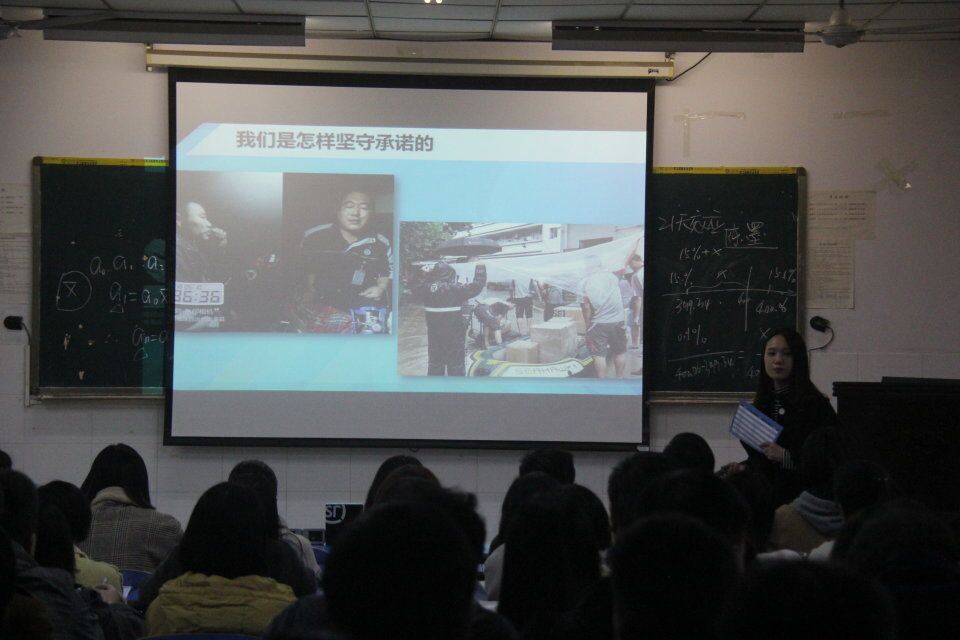 首先,各个公司相关人员详细地介绍了公司的情况、面试岗位、福利待遇、客户情况与招聘要求,使同学们对各个公司有清晰的认识。社会竞争的激流使得将要毕业的大学生举步维艰,校招的出现可以说为大学生提供了提前了解就业岗位的机会。其中,本次宣讲的顺丰速运有限公司主要强调了团队凝聚力,他们表示公司以速运为核心竞争力,并形成了“成就客户,开放共赢,创新包容,社会责任,诚信”的企业文化,有效地推动了公司的发展。同时,他们也强调了优秀且稳定的专业管理团队已成为顺丰速运有限公司快速、健康发展的基石。河南九州通医药有限公司则以药品批发、零售连锁和医药电子商务为核心业务的大型现代医药物流企业。海洋王照明科技股份有限公司自成立以来,一直从事从事特殊环境照明设备的研发、生产、销售和服务,产品涵盖固定照明设备、移动照明设备和便携照明设备三大系列等。三个公司各有特色,他们既表达了对人才的渴求,同样也希望同学们有一个积极向上、努力工作的态度,与企业一同成长。同时,企业人员也鼓励同学们转变就业观念,向更多领域寻求发展,调整好就业心态,争取以最佳的状态迎接新的挑战。宣讲期间,参会的同学认真聆听、提出疑问,并积极地与企业人员交流沟通,明确适合自己的岗位。