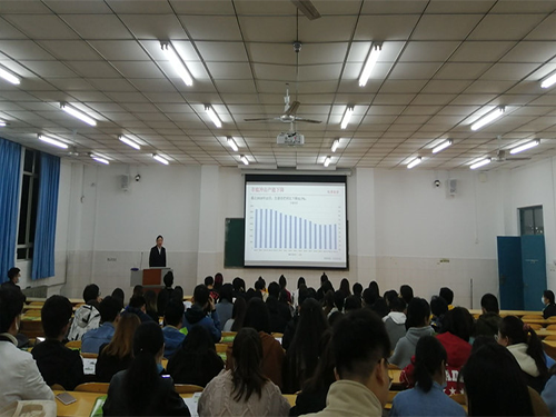 宣讲会上,牧原集团行政区域经理张经理通过开场问答送红包的方式和同学们进行互动暖场,使宣讲会进入热闹的气氛。从牧原的宣传片和PPT讲解让我们了解到,牧原集团已在万亿级行业市场上构建了蓬勃发展的事业大平台,通过不断延伸产业链条,打造了全产业链,构建了产业互联的商业模式。牧原集团现已布局至全国24省(区,市),拥有子公司260余家,总资产超1200亿元。随后,张经理就公司的发展历程、企业福利、薪资待遇、入职流程等问题进行了详细的介绍。最后,张经理和同学们就毕业生在选择岗位时应考虑的因素进行讨论并总结,张经理还向同学们提出了一些实用性的就业建议,受到了同学们的一致认同。