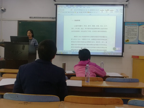 本次大赛在主持人的宣布下拉开了序幕。比赛中,各参赛选手均高度专心的向评委展示着自己的营销策划方案,对每一条信息都认真解释。虽然各类食品和生活用品营销错综复杂,但是王书记和胡老师很有耐心,对选手的每一个方案都进行了认真核对及确认。他们高度负责的态度也深深地激励着每一个选手和在场观赛的人员。在赛程中,王书记向各位选手提出了很多有价值的建议,她鼓励大家勇于实践,不惧失败,要结合实际制定合理的方案,并表示愿意提供学院的各种资源助力同学们敢于圆梦、勇于圆梦。随后,胡老师指出了选手用词不准确的问题并且有耐心的对“竞争力”和“市场竞争”两个名词进行解释。他讲到,竞争力是企业或个人相较于竞争对手而言所具备竞争优势,而市场竞争是指参与者双方或多方一种角逐。现场气氛良好,大赛也圆满结束。