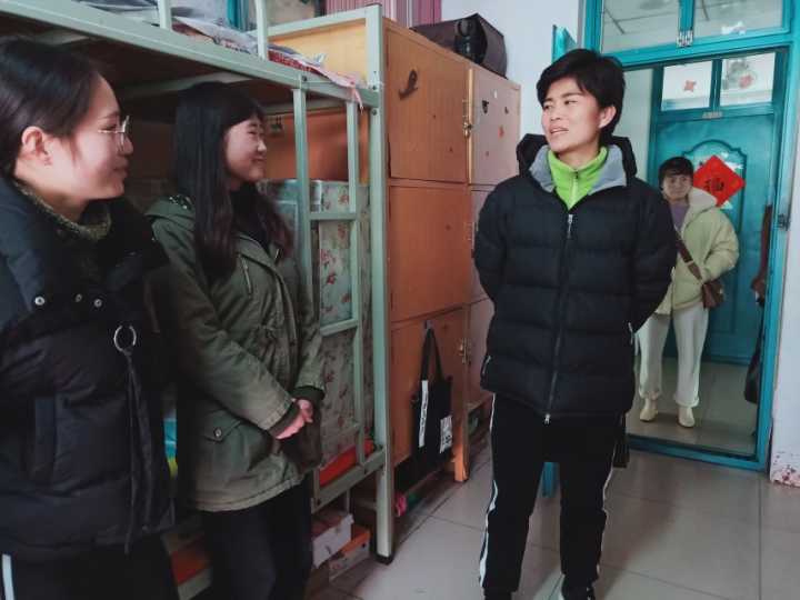 每进到一个宿舍,陈永刚书记都亲切询问学生假期过得怎么样,有什么收获,并叮嘱同学们尽快整理好宿舍内务,收收心,及时转换紧张的学习状态,严格遵守学校纪律,提高个人安全意识。同时,团总支书记王玉香对同学们假期的学习情况与生活状况进行了了解,提出了一些切实的建议,帮助学生解决学习、生活中的困惑。辅导员刘阳、尚津以及王雪冰老师对各自负责的班级学生进行了亲切交谈,老师们表示同学们在学习、纪律、生活等方面遇到问题了可以随时向他们寻求帮助。