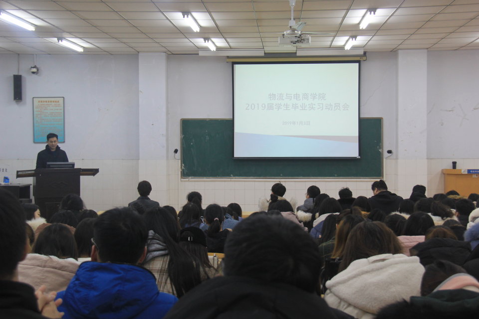 本次动员大会由陈书记担任主持人,他表示,毕业生即将离校,走向社会,而实习正是同学们踏入社会的一小步。本次动员大会旨在向同学们安排部署相关实习工作,让同学们明确实习流程与实习的重要意义。动员会第一项,由于院长宣读毕业生实习方案,包括实习目的、实习时间、实习内容以及实习步骤。他讲道,实习是大学教育工作的重要环节,它不仅是锻炼大学生实践能力的重要渠道,同时也是学院提高教学质量,发掘教学问题的有效方法。其次,他还提到,实习的主要内容是去接触社会,了解社会,掌握物流电商行业的主要特征及理论联系实践的方法,培养正确的职业观念。动员会第二项是由曹院长作动员讲话,他先对实习工作作出以下几点忠告:第一,同学们应密切关注实习的相关时间点,并按时注册登记;第二,每位同学都必须保证有实习单位,未找到的同学应及时与学校联系,学校会统一再组织;第三,在安全问题上,他强调,注重交通安全,要时刻遵守交通规则,同学们在实习前应买好保险以免工作中出现事故造成损失,他还提醒同学们要防骗防传销。随后,曹院长还告诫同学们一定要本着学习的心态去实习,在单位上,应认真负责,培养团队精神,吃苦耐劳,为后面的学生做好榜样,最后,他祝愿实习生们能够在新的一年中找到好工作,专升本的同学们能够考上好大学,今天你为物电增光,明天物电因你骄傲。动员会在一片激昂的掌声中结束。