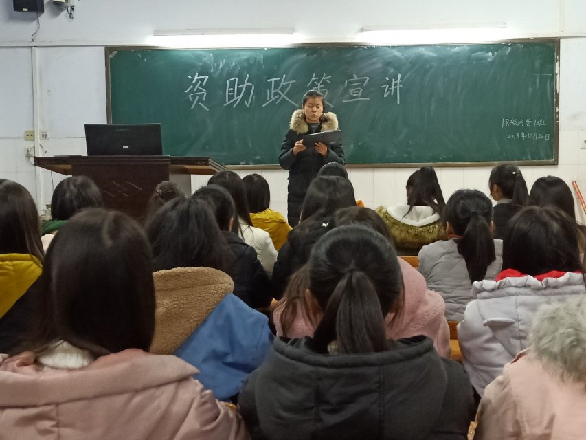 为更大力度的落实学生资助政策,增强资助政策宣传效果,帮助更多贫困家庭学生顺利完成学业,推进教育公平,12月25日五位宣传大使刘鹏利、张宁宁、何静、马婷婷、王梦歌分别在各自的班级进行了资助政策的宣讲活动。