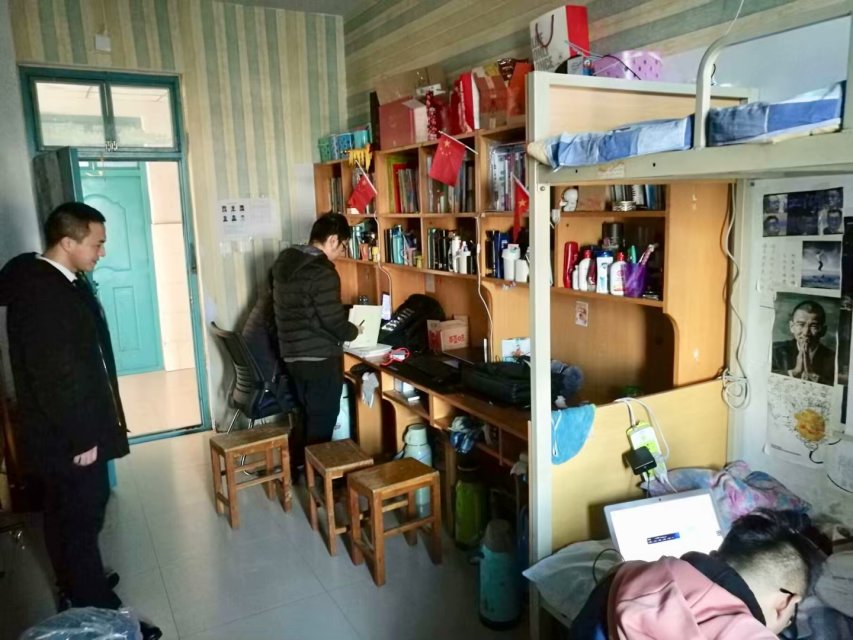 为响应我校《英国威廉集团学生公寓火灾防控宣传教育工作方案》,排查学生寝室的火灾隐患,维护学生寝室的安全。12月14日williamhill英国举办导员进宿舍活动。团总支书记王玉香、辅导员陈梦莹,胡可鑫老师携团学会生活部全体干事对15号学生宿舍里我院学生寝室进行了随机走访。