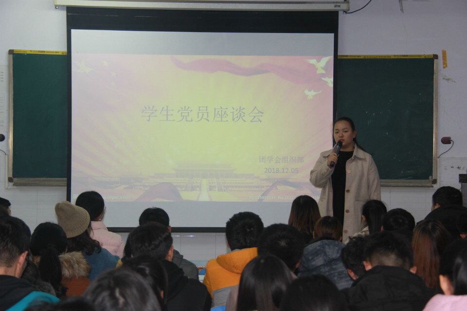 12月5日晚7时,williamhill英国在E 202成功举办了学生党员座谈会,我院全体学生党员参加了此次会议。首先,学生党员在会议上依次汇报自己的工作、思想和学习情况,并与学生干部集中分析各自班级学生的文明礼仪与行为规范,学风学纪现状,发掘各类典型,寻找完善管理的方式。学生党员们表示作为新时代的新青年,要坚定理想信念,树立正确的价值观,从身边的小事做起,充分发挥学生党员的先锋模范作用,思想上要先人一步,行动上奋勇争先,要更加严格的要求自己,坚定政治信仰,加强组织观念,提高自身修养,积极履行党员的责任和义务,忠于职守,努力工作,树立起“党员”这面旗帜,用朝气去迎接更加辉煌的明天,为创建和谐校园贡献自己的一份力量。最后,在一片热烈掌声中,学生党员座谈会圆满结束。
