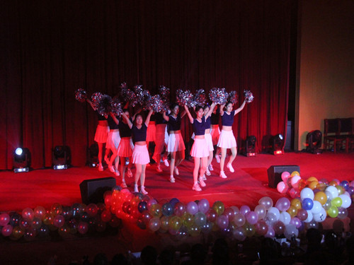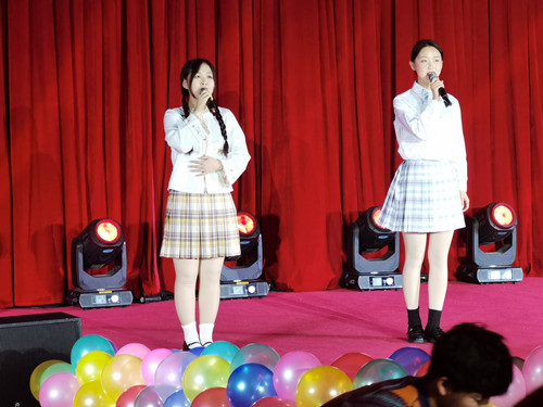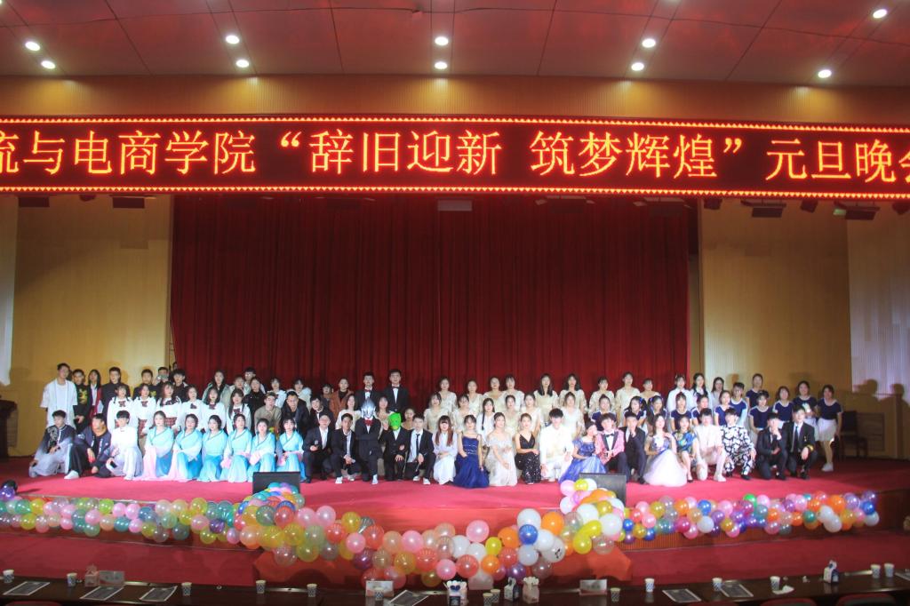 中场休息时,表演队的王森同学带领两位卡通扮相的“惩罚者”与大家一起互动游戏,为中奖获胜的老师和学生赠送了精美的礼物。游戏结束,古典舞队带来舞蹈——《水袖墨痕》,盈盈身段,飘飘水袖,展现着古典舞的柔美韵味。接着,由礼仪模特队带来惊艳四座的走秀——《charming!》,队员们各个身着亮眼的礼服,或结伴或独走,一颦一笑都展现着自己的独特。走秀完毕,表演队幽默风趣的小品《打劫》登场,表演者精湛的演技和夸张的动作言语令全场师生捧腹大笑。接着,爵士舞队的《舞蹈串烧》惊艳全场,各位甜酷女孩带着精致亮眼的妆容舞动身姿,带动全场为之欢呼。最后压轴出场的是由我院宋煜昊、栗富强、安晶晶、贾永科四位同学带来的《歌曲串烧》,每一首歌都承载着物电人的梦想与青春,台下的老师和学生都举起手机的闪光灯为他们应援,并一同跟着轻唱。晚会临近结束,全体表演人员和主持人一起上台恭祝大家节日快乐,送出美好祝愿,晚会在大家的欢呼与掌声中圆满结束。