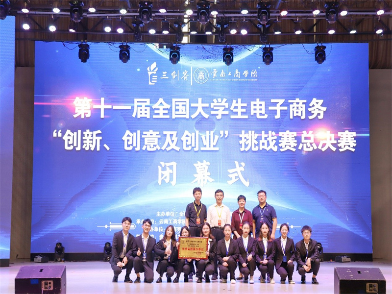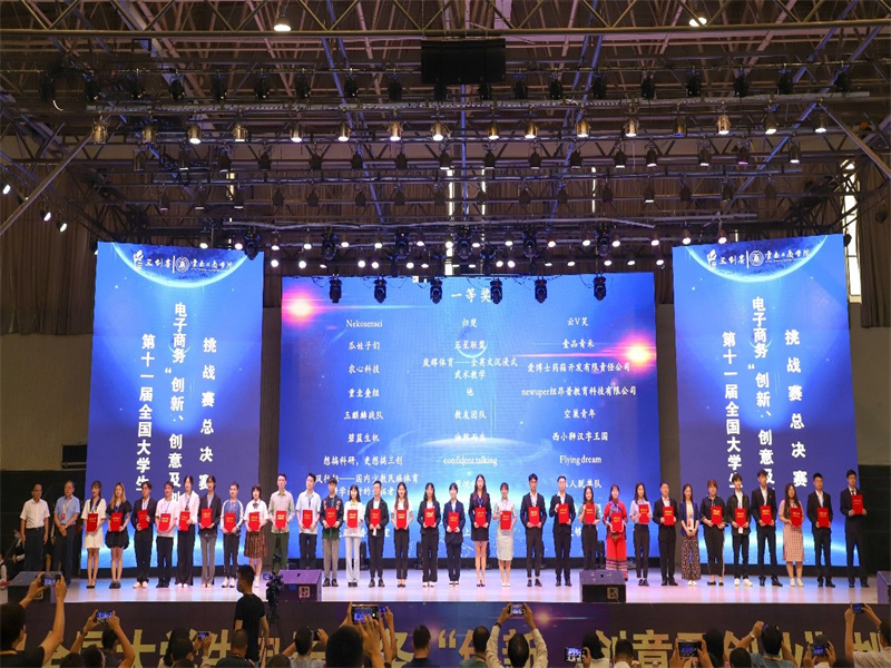 7月21日上午9:00,由全国电子商务产教融合创新联盟主办、云南工商学院承办的第十一届全国大学生电子商务“创新、创意及创业”挑战赛(以下简称“三创赛”)全国总决赛在云南工商学院成功举行。本届总决赛从全国32个分赛区省级赛选拔出185支优秀团队参加总决赛,曹献存教授和殷猛博士带领我校2支代表队参加了本次总决赛,其中曹献存教授应邀作为国赛评委参与了21日的项目评审工作。