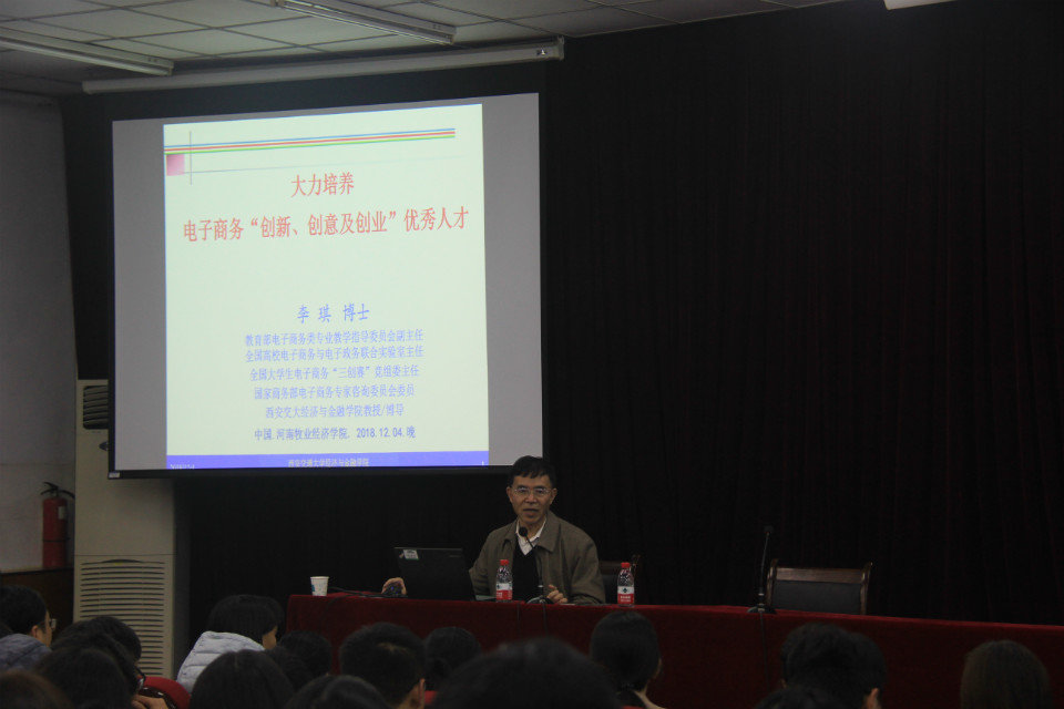 12月4日,英才校区E109教室座无虚席,180名师生以热烈的掌声欢迎我国知名电商学者、西安交大经济与金融学院李琪教授莅临我校,以“大力培养电子商务三创优秀人才”为主题作客物流与电商本学期第三期名师讲坛。williamhill英国党总支书记宋之苓教授、副院长李艳菊教授、电子商务教研室、网络营销教研室全体教师以及我院17级电商一班、电商二班、物流电商班的全体学生到场聆听,williamhill英国院长曹献存教授主持本期活动。