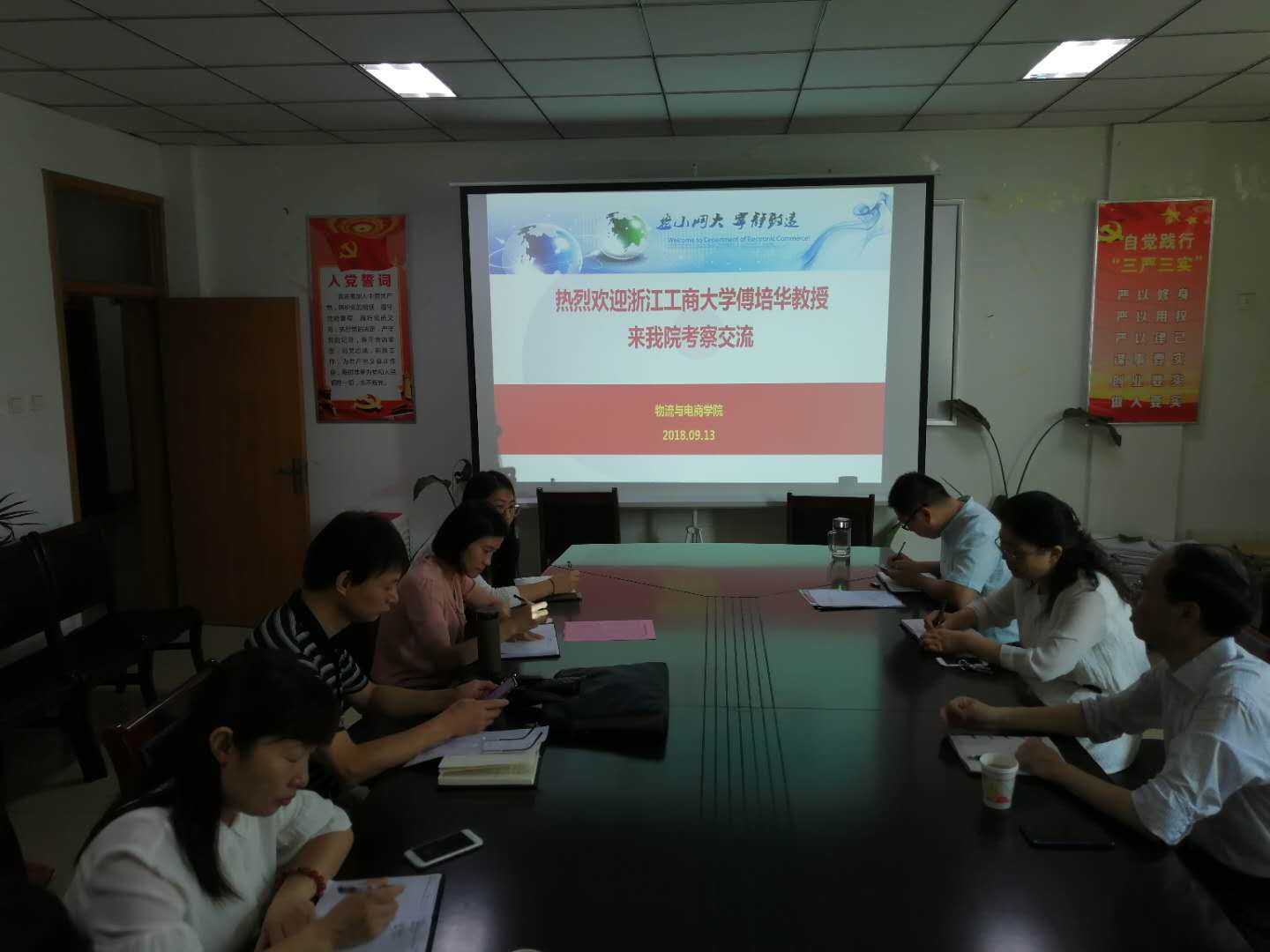 傅培华教授在豫期间还为物流电商学院的教师们围绕“高水平项目的申报和人才培养”主题做了报告,并就智能物流前沿、学科特色凝聚、学科建设平台搭建、科研与实验室管理等问题与老师们进行了深入热烈的互动。