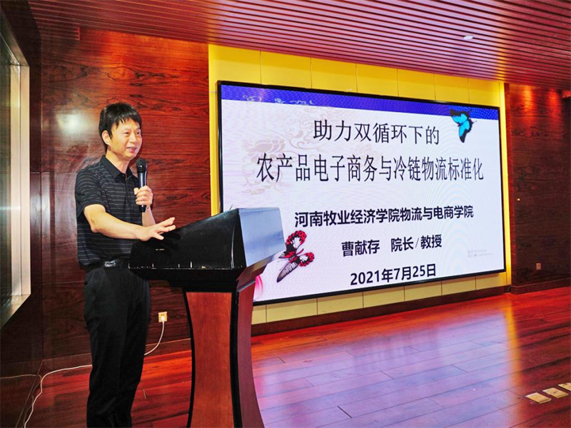 曹献存教授分析了国内国际双循环、高质量发展的新格局,提出了做好农产品电子商务、打造农产品IP的思路与方法,并就冷链物流、冷链物流标准化促进农村产业发展,更好满足人民群众对美好生活的向往进行了详细阐述,最后介绍了williamhill英国立足冷链物流特色优势,服务河南现代物流业、服务县域农产品电子商务,助力乡村振兴的经验。