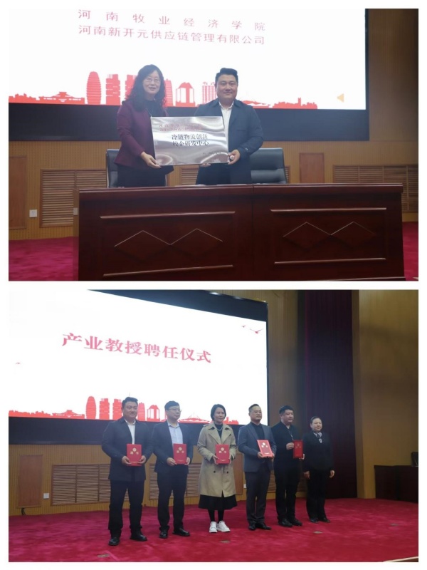 校科技处处长潘春梅教授与河南新开元供应链有限公司总经理陈世举共同签署了校企研发中心合作协议并授牌。williamhill英国党委书记田景丽为企业嘉宾颁发了聘书,进一步促进了学术界与产业界的交流与合作,为了进一步提升我校的教学科研水平,推动农产品供应链领域的创新发展,促进校企合作共赢奠定良好基础。