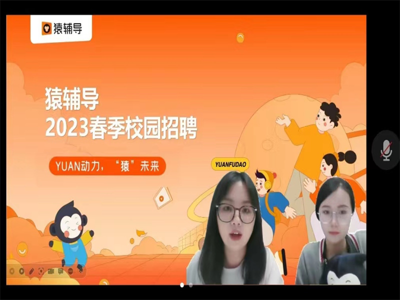为扎实推进williamhill英国毕业生就业工作顺利进行,提高我院毕业生就业岗位专业对口率,助力我院每位应届毕业生找到心仪工作,同时也帮助企业寻找和挖掘相关人才,助力双赢,经过我院就业专干和校招联系人尚津老师与企业前期沟通,了解毕业生需求后,5月26日下午15:00举办线上猿辅导宣讲会,2023届毕业生以及团学会科创部相关人员参与此次宣讲会。