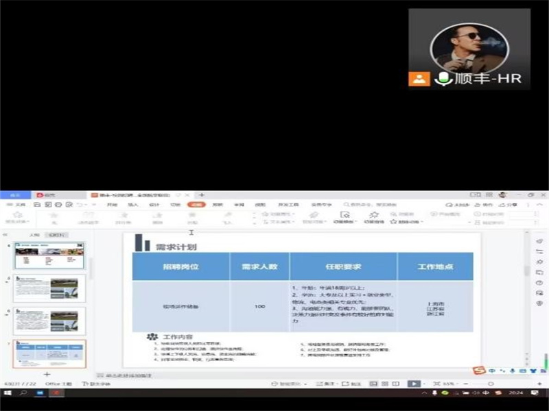 会议起初,顺丰招聘负责人首先通过PPT简单介绍了顺丰的发展历程,说明当前顺丰在国内国际的优势地位。随后,招聘负责人说明了顺丰目前经营的物流、金融、商业等方面的服务,顺丰始终贯彻基于物流、融通金融、流通商业的服务原则。顺丰所提供的高质量物流服务以及延伸至价值链前端的产、供、销、配等服务环节,与我院物流管理、电子商务等专业高度契合,我院毕业生能够迅速进入工作状态,为个人增值。负责人表示本次招聘100名现场运作储备干部,在年龄、学历、个人能力等方面作了具体要求,工作地点主要在上海市、江苏省、浙江省等地。负责人详细讲述了现场运作储备干部的工作内容:协助现场管理人员的日常管理;处理快件的分拣和扫描,跟进快件全流程;协调上下级人员流、信息流、资金流的顺畅流转;管理日常场地物业、物资、行政事务;场地各类费用核销、报销等财务类工作;对上级平级沟通,做好外包商对接及管理;跨境国际件处理等营运支持工作。入职员工享有五险一金,法定节假日,节日关怀等福利,实习薪资薪酬福利丰厚。负责人引导实习员工可通过运行、中控、营运、车管四条通道发展,结合员工自身优势灵活调整,可使企业与个人实现双倍增值。负责人通过PPT展示了公司办公环境,仓储工作环境,住宿环境等,毕业生们可以在公司享受到优厚待遇。招聘负责人鼓励毕业生们积极报名参与面试,并表示只要符合招聘要求的都会予以录用。