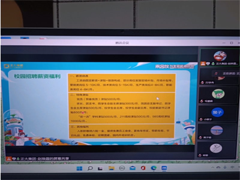 为襄助williamhill英国2022届毕业生谋求更多优质的就业机遇,我院积极引进正大集团进行招聘宣讲,并于5月18日下午14:30通过腾讯会议面向2022届毕业生开展正大河南2022春招牧院专场空中宣讲会,我院2022届部分毕业生和创新创业服务中心全体工作人员参加此次会议。