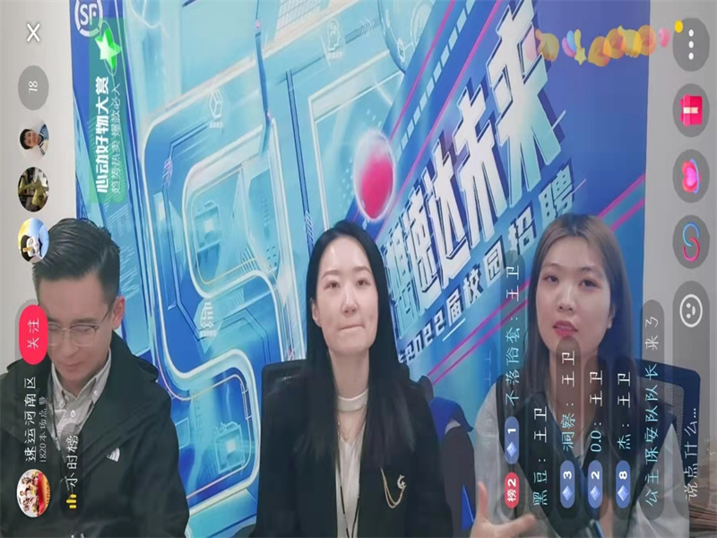 招聘会伊始,宣讲人员先给毕业生来了几段互动小游戏,大家都积极抢答,活跃气氛,然后瑞雪学姐又向大家简单介绍了顺丰,让毕业生在主持人的讲解中深刻的了解了顺丰是一个什么样的企业。紧接着又为大家讲述了顺丰的发展历程,从创业初期手工操作到构建顺丰数字大脑迈入智慧物流时代,如今已经拥有满意度连续11年榜首、就业岗位55万+等优秀的成绩。还有多元顺丰,如:顺丰速运、顺丰科技、顺丰航空、顺丰金融等。其中,顺丰科技可以让大家体会到每一个业务环节都有科技的力量。随后主持人引出了顺丰的企业文化,顺丰以成就客户,推动经济,发展民族速递业为自己的使命。顺丰的愿景是成为科技驱动的行业解决方案服务公司。这不禁引起了毕业生的共鸣。最后,讲到顺丰的此次招聘内容,有两个岗位方向,分别是经营管理方向和职能专业方向,其中管理型人才将会被优先考虑,主持人对两个岗位方向的工作内容和薪酬标准分别做出了详细讲解。随后,主持人就大家关心的简历投递问题向毕业生提供了简历提交平台,很多毕业生都积极提交简历,最后,主持人给了大家一个提问问题的时间,毕业生们踊跃提出问题,空中会场评论区气氛热烈活跃。