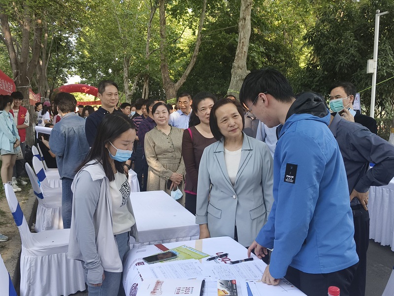 双选会期间,校长尹新明、党委副书记姚毅、副校长边传周等校领导在大学生威廉希尔指导服务中心副主任张琳及各院领导老师的陪同下莅临现场,询问毕业生就业意向、职业规划以及对当前就业市场的了解,鼓励学生与用人单位建立联系,了解企业需求,寻找合适工作机会。