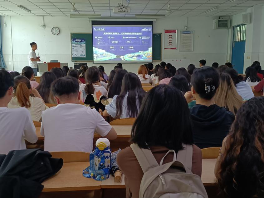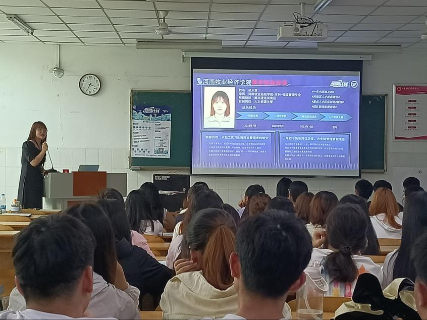 宣讲会正式开始前,顺丰集团河南分区招聘负责人王先生首先播放了顺丰集团的介绍视频以及他们的“新鹰计划” ,为同学们简单介绍了顺丰集团的发展史,顺丰集团创立于1993年,发展迅速,于2017年借壳上市,2019年营业收入破千亿,现在顺丰控股是中国最大、全球第四大的综合供应链集团。招聘负责人通过提问有奖的方式,调动大家的积极性。同时向大家详细介绍了顺丰集团的组织特性–球队文化。同时邀请本校19级学姐胡天雅,为大家分享在顺丰的工作经历,为大家解答疑惑。本次招聘岗位主要职位是经营管理岗,主要负责河南一二线城市的网点经营管理,应聘者通过9个月的实习期后将定岗定薪定职,此后可通过两条晋升通道实现持续发展,实习期内薪资由具体工作网点而定,有保底薪资,多劳多得,与正式员工相同。工作地址在河南省,如果有特殊工作地点要求也可以申请。根据工作地点可以提供免费住宿,员工会有多元化的福利及保障,节日开工福利、电竞比赛、篮球比赛等福利。最后,负责人鼓励同学们积极参加校招,并针对同学们的疑问作出解答,引导有意向者填表,开始线下面试。至此,本次宣讲会圆满落幕。