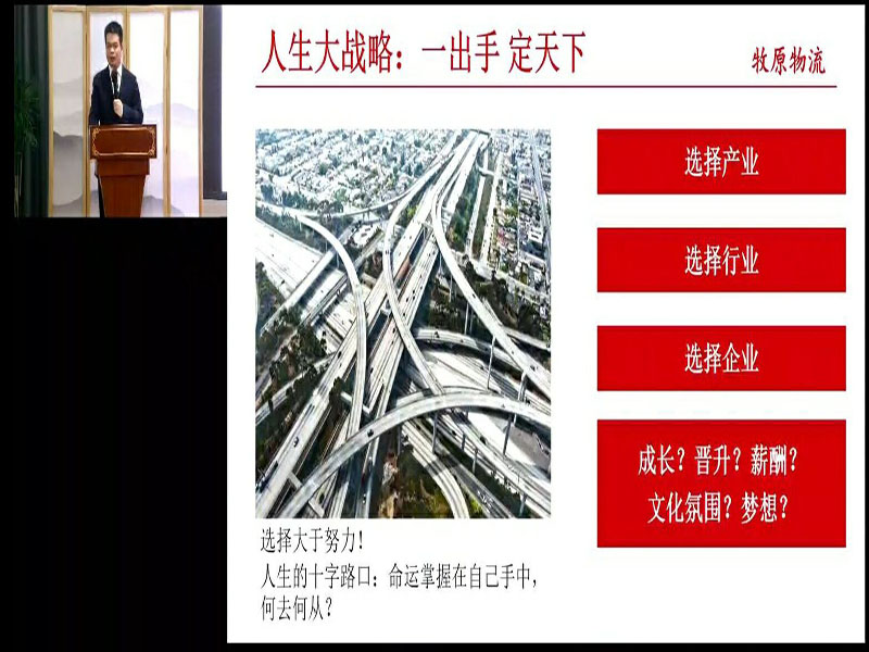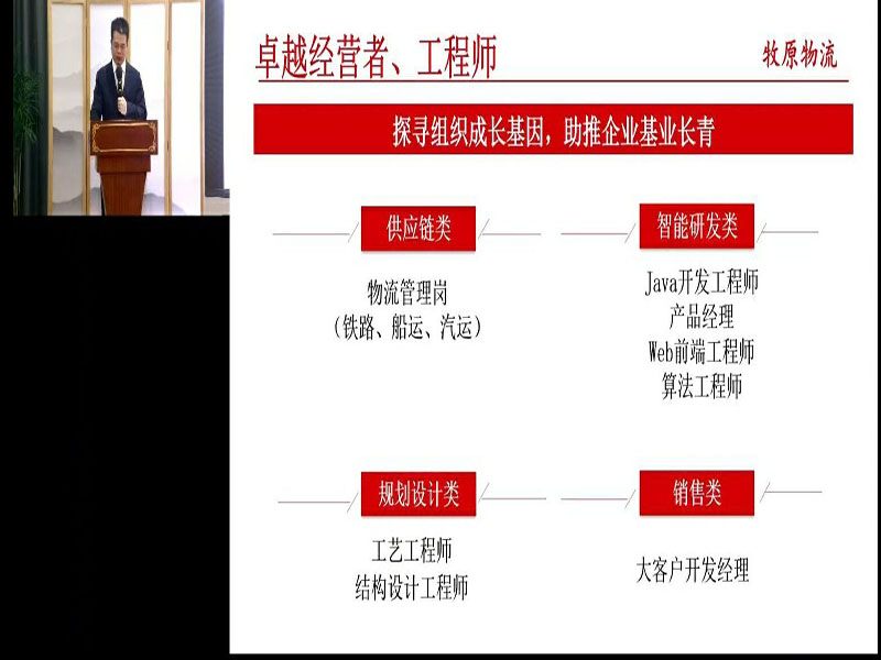 本次空中宣讲会由牧原企业招聘负责人杨宗伟先生主持。会议伊始,杨先生首先为学生介绍了牧原企业的企业概况,牧原物流始终秉承着“让人们吃上放心猪肉,享受丰盛人生”的愿景,深耕养猪主业29年,在万亿级行业市场上构建了蓬勃发展的事业大平台,打造饲料-种猪-养猪-肉食全产业链,构建产业互联,业务遍布全国24省(区、市),拥有子公司300余家,总资产超1900亿元。然后,招聘单位通过PPT展示、招聘负责人讲解、线上互动等方式向同学们介绍了企业文化、职业发展方向、薪资福利、人员需求等。最后,招聘负责人提出“改变行业,塑造未来。牧原大舞台,有梦你就来!”向同学们发出邀请,希望同学们踊跃投递简历,尝试自己!